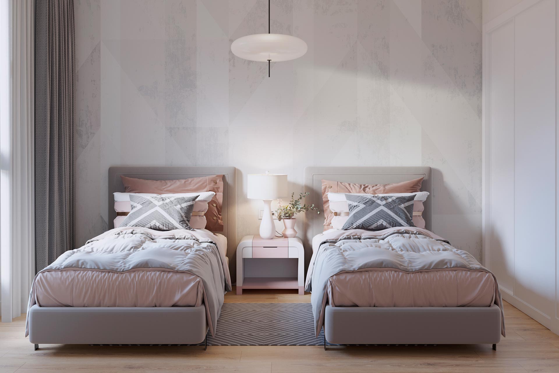 Tarima laminada AC4 biselada a 4 lados de Tarkett Primavera Tundra. Falsos techos en todas las estancias. Pintura plástica en paredes y techos. ¡Y a relajarse mirando el techo!
